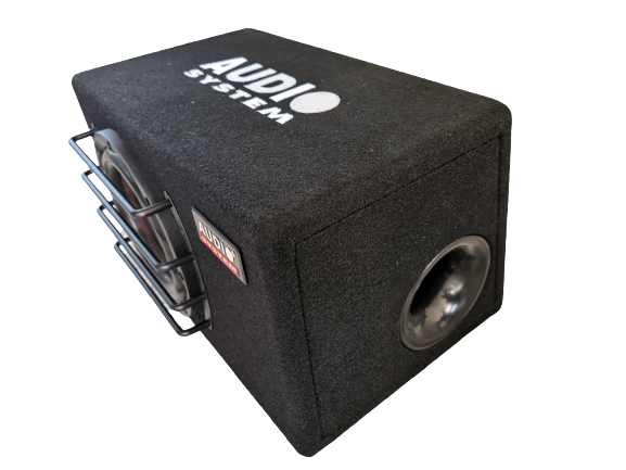 - Compacte kist, bedekt met duurzaam tapijt en bescherming van de suwoofer d.m.v. een grill.