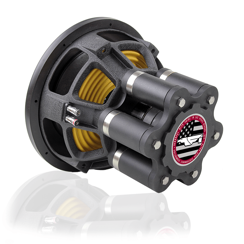 The BTL v3 Series is the latest in the progression of Fi subwoofers geared towards thundering daily drivers. A very unique 6 column Neodymium magnet design using US steel cut on our water jet and finish machined on our CNCs. There is plenty of motor force in the FEA derived design for both daily and SPL use. Utilizing a solid pole and a new 3 channel venturi aided pole profile, the forced cooling keeps thermal temperatures under control. Six grade N52 Neodymium magnets provide the Gauss while 5 Fi designed 10″ heavy progressive spiders keep things under mechanical control. Utilizing a special 144 tinsel count leadwire that is double sewn to the spider pack, there are no losses in power transfer to the coil (available in either standard stitched with terminals or the hybrid stitched/FOAD termination). The 2017 BTL Series is the culmination of years of testing and development in the BTL line. Setting the new standard for what it means to be “Built To Last”.